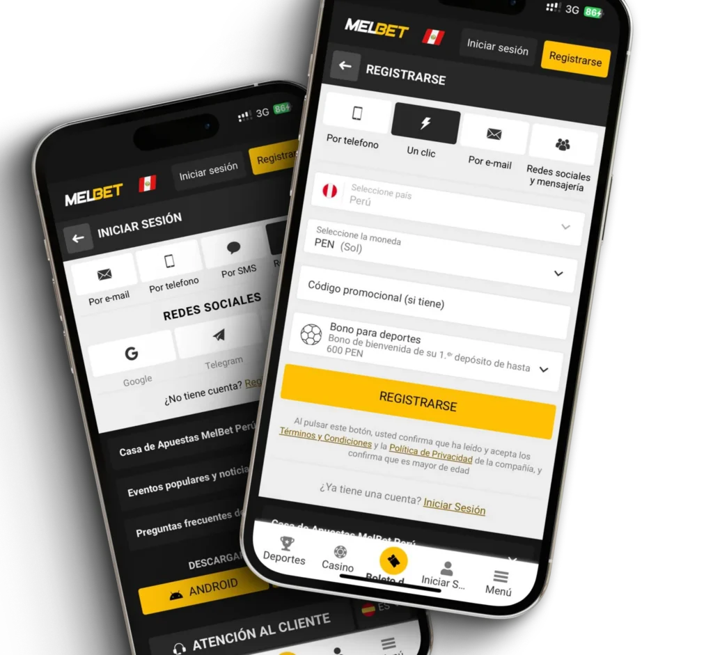 • En un teléfono móvil o tableta: Usa la app de Melbet o la página web móvil.
